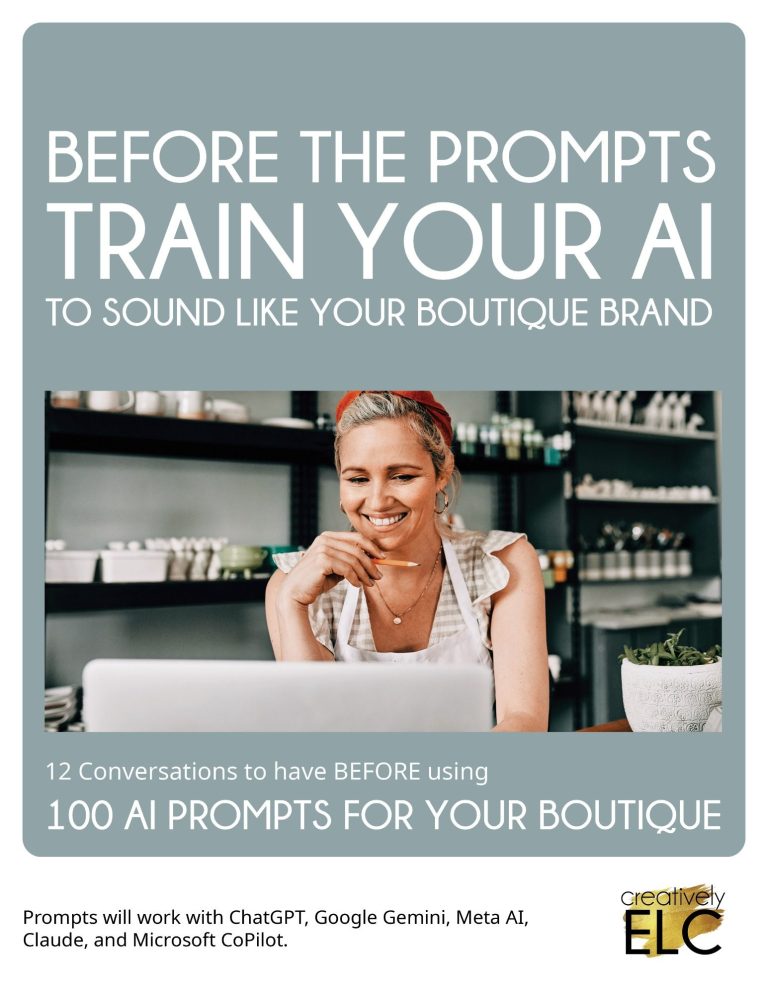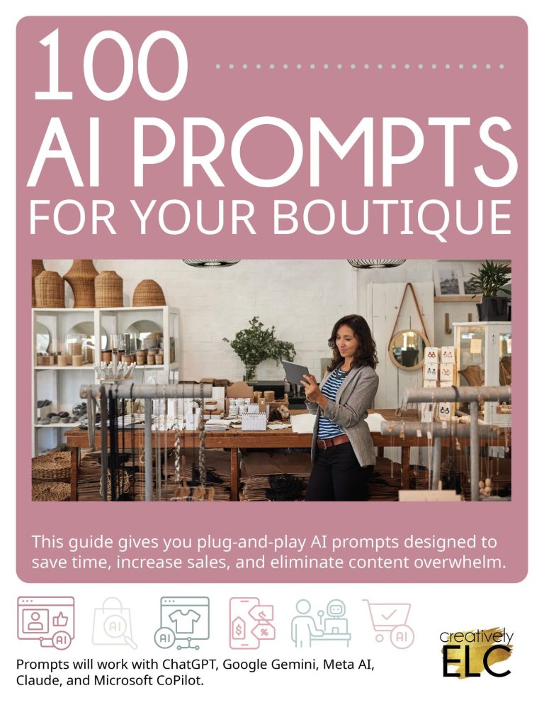 Using AI for boutique marketing also creates consistency across your brand. Whether you are launching a new product, running a promotion, or building your social media presence, having a system of AI prompts ensures your content stays aligned with your brand voice and sales goals.